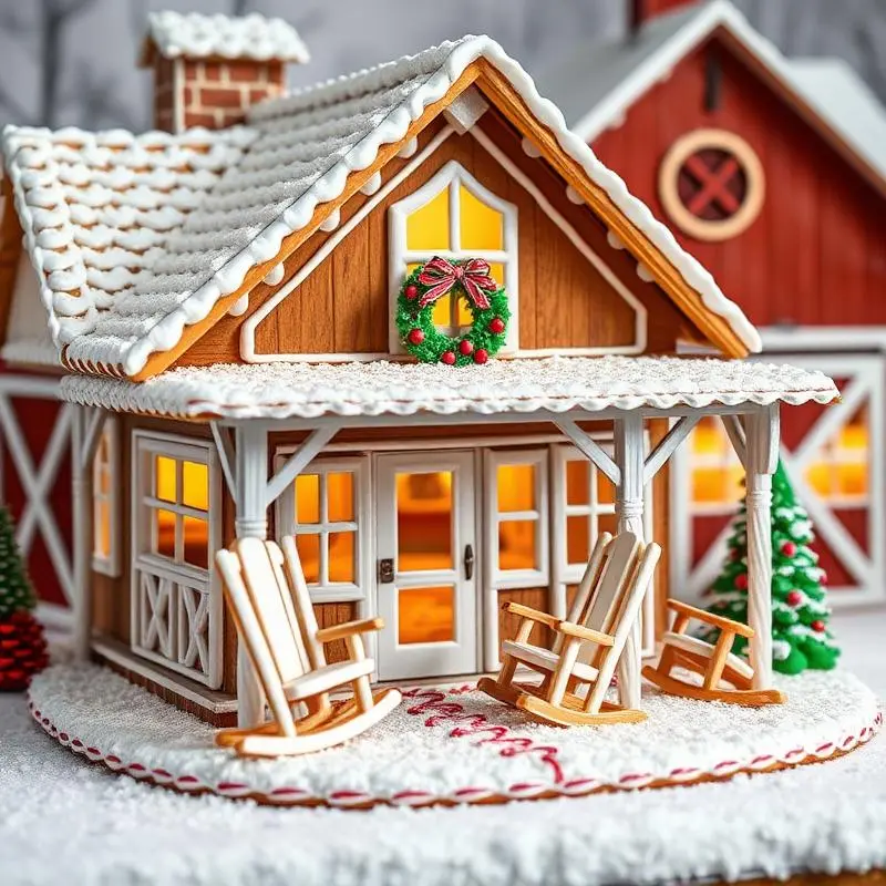 A cozy country-style design with pretzel fencing, chocolate chip stone pathways, and graham cracker barn accents