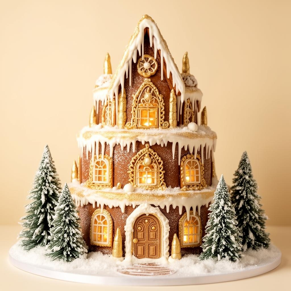 Elegant multi-tiered creations featuring gold accents, intricate icicles, and stunning architectural details for upscale events.