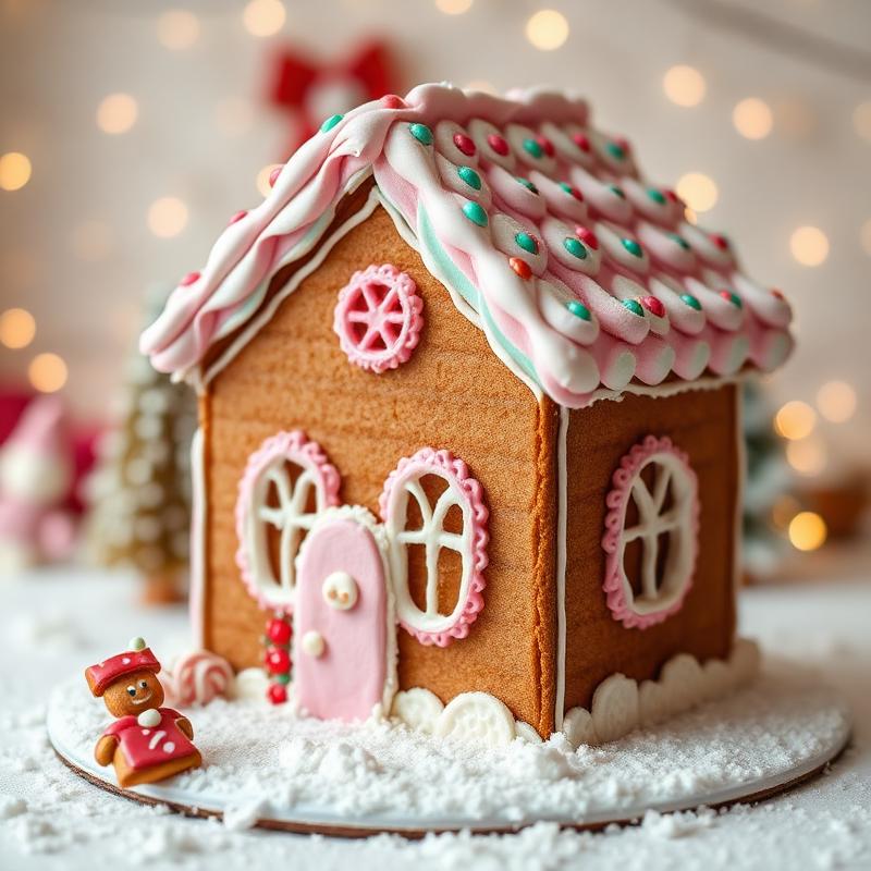 Traditional gingerbread houses with candy cane pillars, gumdrop gardens, and snow-dusted rooftops that evoke cherished holiday memories.